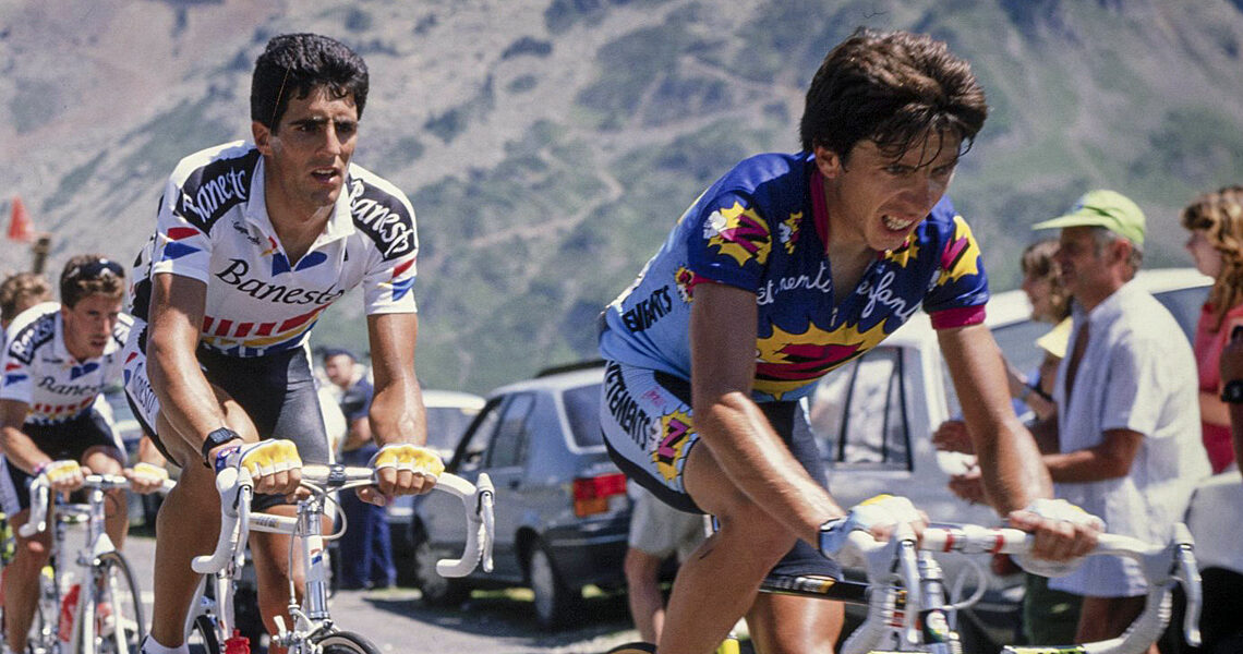 Climbing ahead of Indurain, Delgado and Lemond in the 1990 Tour