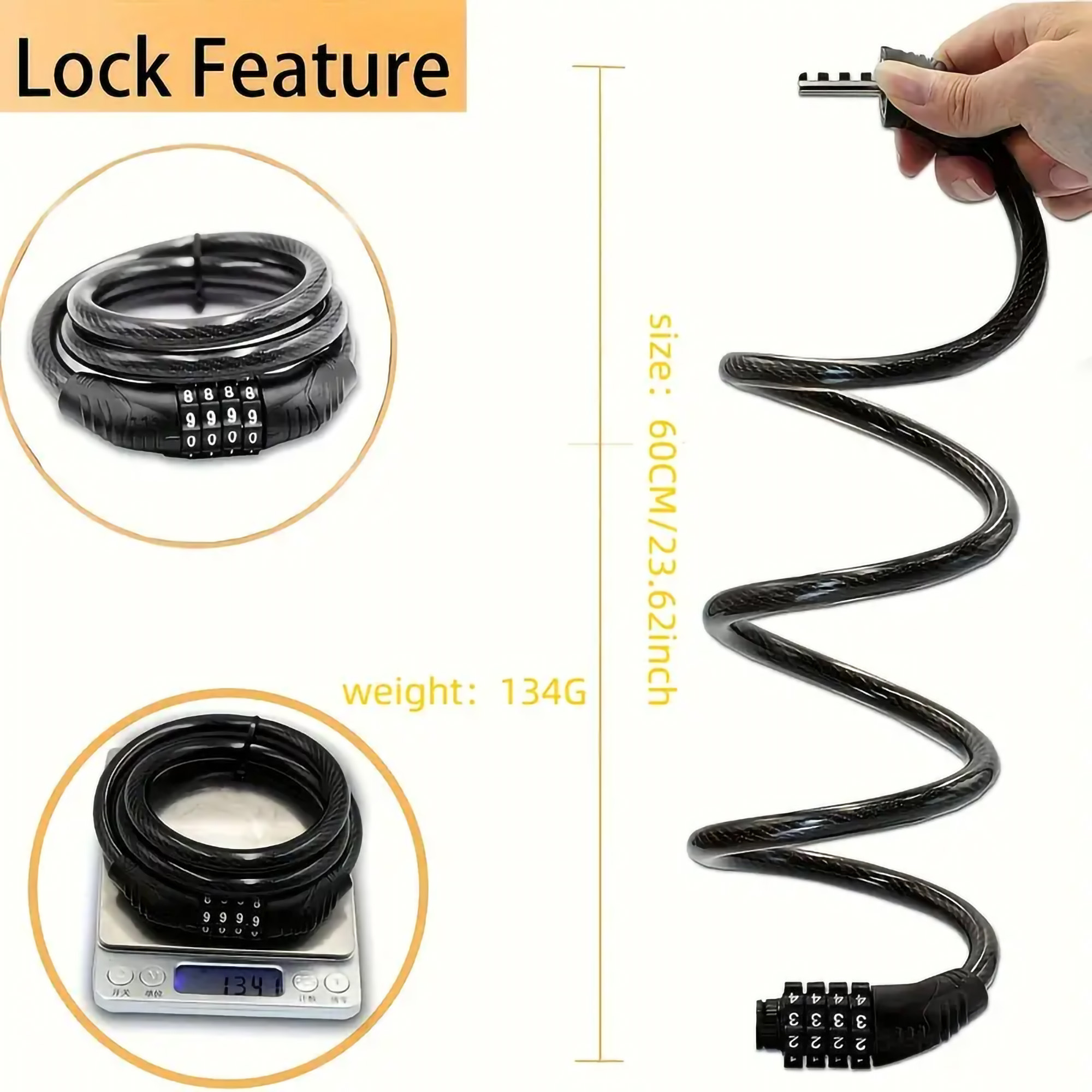 - High Security: Features a 4-digit combination lock mechanism, offering up to 10,000 possible code combinations for enhanced security against theft.