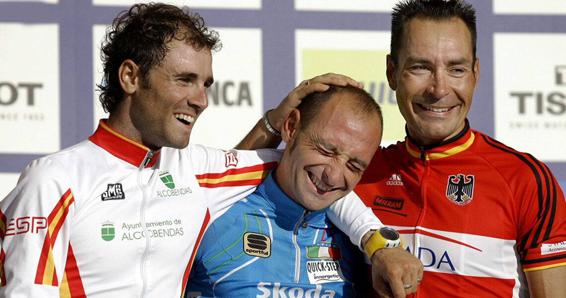 The winner on the day was Paolo Bettini from Erik Zabel and Alejandro Valverde, the man behind ‘The Cricket’s’ win was former Het Volk and Paris-Roubiax winner, the late Franco Ballerini, the team Capo. The big man from Florence scored a hat trick of wins in the Worlds as manager, two from Bettini and one from Ballan. Sadly, Ballerini died in a car rally crash in 2010 – he’s sadly missed.